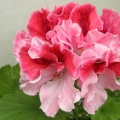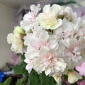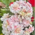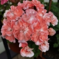 Ириол Eternite. Зональная пеларгония. Компактный тип роста. Цветоносы прямостоячие, соцветия махровые, плотные, крупные. Цветы имеют несколько оттенков с переходами цвета в бело-розово-лососевый.