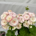 Одна из красивейших зональных махровых пеларгоний, даёт много цветоносов, цветы - розочки, размером 4.5-5см, куст пышный самоформирующийся, компактный