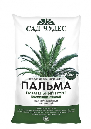 Почвогрунт полностью готовый нейтральный, средней плотности за счет повышенного содержания песка, высокообеспеченный элементами питания, содержит агроперлит. Особенно эффективен для выращивания: пальм (финиковых, хамеропс и др.), фикусов, шефлер, фатсий (аралий), драцен, самшита, лавра, земляничного дерева, смоковниц, олеандра, маслин, эвкалипта, юкк, кротонов.