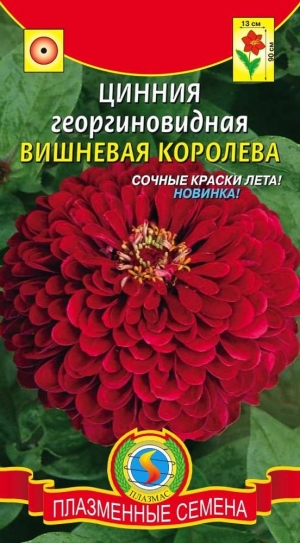 Великолепное обильно цветущее растение с яркими махровыми соцветиями станет прекрасным украшением в вашем саду. На крепких, ветвящихся стеблях, до 90см высотой, в июле появляются удивительно крупные вишнево-красные цветки, до 13см в диаметре. Язычковые цветки удлиненно-лопастной формы, расположены черепитчато с чуть приподнятыми краями. Цветут продолжительно, до самых заморозков. Циннии используются для посадки в различные цветники, на клумбы, рабатки. Хорошо сочетаются с ноготками, бархатцами, мелкоцветковыми хризантемами, вербеной. Идеальны для срезки.