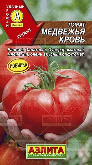 Крупноплодный биф-томат. Ранний сорт для открытого грунта и пленочных теплиц. Растения детерминантные, высотой около 1 м. Средняя масса плода 200-300 г. При нормировании завязей вес плода достигает 500 г. Томаты мясистые, ароматные, очень вкусные. Урожайность 9-12 кг/м2.