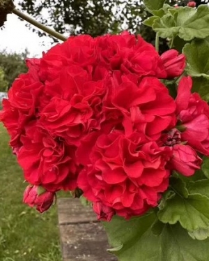 Это гибрид, отличающийся компактным кустом и крупными, густомахровыми цветами ярко-красного цвета с возможными оттенками. Она относится к гибридам зональной пеларгонии с преобладанием зональных кровей и характеризуется необычной формой цветков и высокой декоративностью.