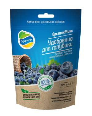 Комплексное гранулированное органическое удобрение, содержащее все необходимые макро- и микроэлементы в органической форме для роста, развития и обильного урожая голубики.