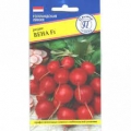 Раннеспелый всесезонный гибрид голландской селекции с особо крупными корнеплодами массой до 35г. Образует аккуратную розетку и быстро формирует красивые корнеплоды ярко-красного цвета. Может выращиваться в открытом грунте в течение весенне-летнего вегетационного периода. Не дрябнет, устойчив к цветушности. Рекомендуется для выращивания во всех климатических зонах РФ. Розетка листьев полупрямостоячая. Корнеплоды округлые, красные с плоской головкой, диаметром до 5см, массой 25-35 грамм. Мякоть белая, нежная, слабо-острая, сочная с отличными вкусовыми качествами. Корнеплоды высокотоварные, отличного качества. Хорошо подходят для рыночным продаж. Урожайность 2,2-2,5 кг/м2.