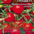 Среднеспелый гибрид, период от полных всходов до начала созревания – 112-119 дней. Растение детерминантное, высотой 90-110 см. Гибрид отличается высокой энергией роста, одновременным созреванием плодов и прекрасной их консистенцией. На кисти одновременно созревает до 30 плодов. Плоды круглые, тип черри, темно-красные, с тонкой кожицей и прекрасным вкусом. Идеально подходит для домашней кулинарии, приготовления и украшения салатов, для детского и диетического питания.