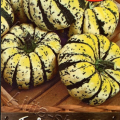 Очаровательная миниатюрная тыква, используемая для употребления в пищу и для украшения интерьера. Сорт раннеспелый, от всходов до уборки 95-100 дней. Растения плетистые, формируют 8-10 плодов. Прекрасно смотрятся при выращивании на шпалерах, заборах и решетках. Тыквины плоскоокруглые, сегментированные, высотой 3-4 см и Ø7-10 см. Мякоть плотная, сочная. Вкусовые качества отличные. Подходит для запекания целиком и для различной кулинарной переработки. Плоды хорошо транспортируются и хранятся продолжительное время. Посев семян на рассаду или в открытый грунт. Растения высаживают в возрасте 20-25 дней. Семена высевают в грунт в лунки по 2-3 шт., на глубину 3-5 см. После появления всходов проводят прореживание. На растении оставляют первые 3-4 завязи, затем верхушку прищипывают. Растениям необходимы своевременные поливы, прополки, рыхления и подкормки.