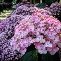 Очень красивый обильно цветущий сорт. Компактная, с густой кроной и крупной листвой высотой до 150 см.Изящные очень крупные, махровые соцветия состоят из многорядных звездочек, в начале распускания зеленоватые, затем розовые или голубые тона (в зависимости от кислотности почвы), а в полном роспуске и по мере вегетации приобретают более насыщенные красные или фиолетовые оттенки. Цветет на побегах прошлого и текущего года, с июня и до наступления заморозков.