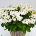 Еще одна новая декоративно-лиственная, красивоцветущая гортензия. Отличается прямостоящими побегами. Листья простые, яйцевидные, ярко-зеленые. Соцветия крупные до 20 см в диаметре. Каждый цветок в соцветии окаймлен чисто белым кантом. В зависимости от кислотности почвы может быть фиолетовой с белым кантом. Предпочитает кислые и слабокислые почвы. Кустарник высотой до 150 см. Требует укрытия на зиму. Цветёт с июля до заморозков. Устойчива к заболеваниям.