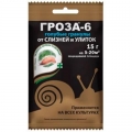 Гранулированный препарат для борьбы с голыми слизнями и улитками на овощных, ягодных, плодовых, цветочных культурах и винограде.Гранулы препарата Гроза имеют голубой цвет, в состав которых входит активное вещество (метальдегид) против слизней, а также вещества добавки привлекающие вредителей и отпугивающие птиц. Слизни и улитки охотно идут на гранулы Грозы, а не на растения и после контакта с препаратом теряют слизь и гибнут. Погибают только слизни и улитки, на насекомых, млекопитающих, птиц и дождевых червей препарат не действует.Расход препарата Гроза 1 пакет 15гр. на 5 кв.метров.Удобнее всего гранулы рассыпать в междурядьях, что создает защитный барьер от слизней. При таком способе применения упаковки хватает на большую площадь. Действие препарата длится 2-3 недели и сохраняется даже после частых дождей.Количество обработок: 1-2 раза в сезон.